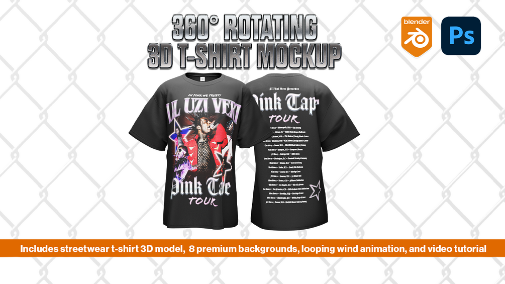 This 3D Animated T-Shirt Mockup provides a simple and dynamic way to showcase your custom t-shirt designs. It features a custom-made, over-sized streetwear t-shirt 3D model with a seamlessly looping wind animation. Basic knowledge of using Blender 3D is recommended.