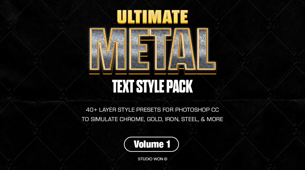 Ultimate Metal Text Style Pack Vol. 1: 40+ PhotoshopText Style Presets